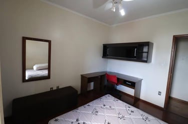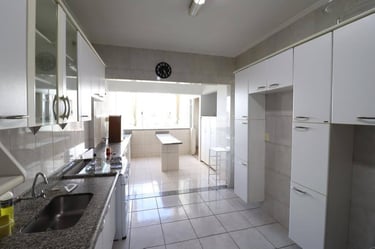 São 210 metros quadrados, quatro quartos sendo um suíte, 03 banheiros, 03 varandas, sala copa cozinha todos grandes. Terceiro andar. Uma vaga de garagem, não tem elevador.