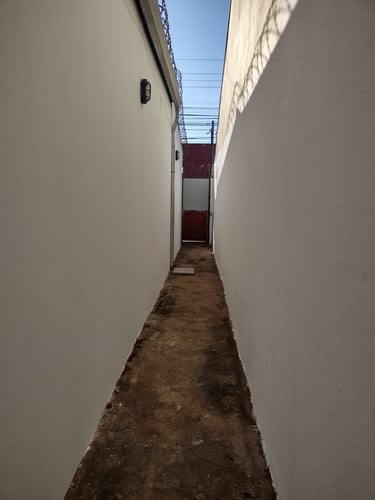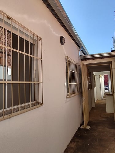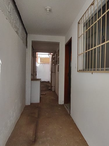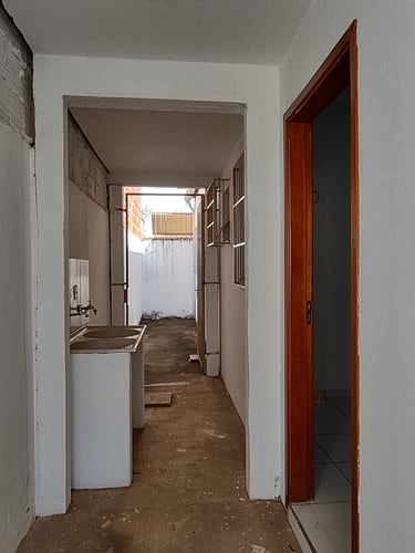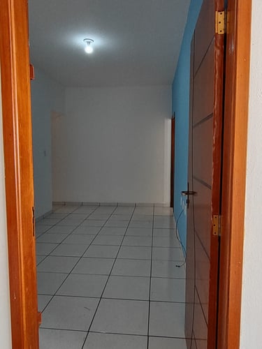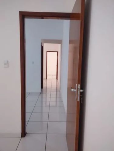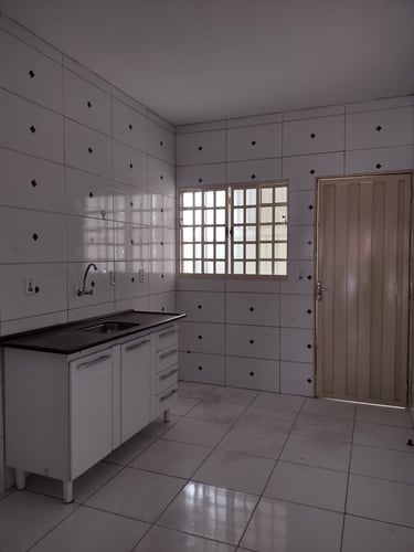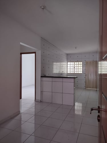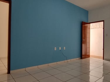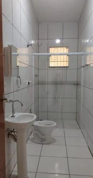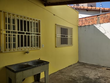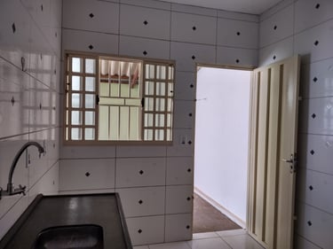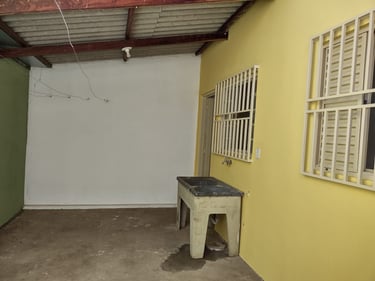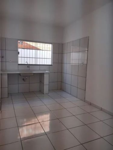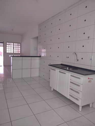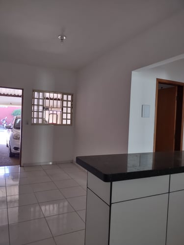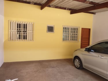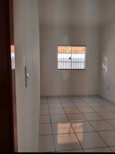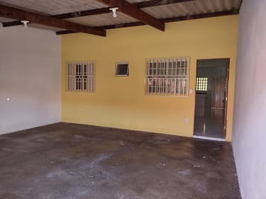2 quartos, sala, cozinha, banheiro, área de serviço/laje, coberta com espaço para moto.